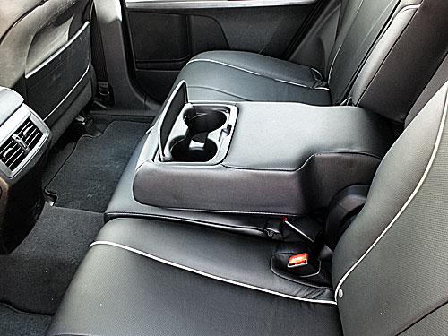 Расстояние между рядами сидений составляет 1015 мм – это позволяет сидеть на втором ряду, чуть ли не закинув ногу на ногу. Следует отметить, что задние сиденья расположены на 12 мм выше сиденья водителя (амфитеатром), спинка в них регулируется, а вместо центрального места можно разложить еще один подлокотник с подстаканниками.