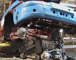 Когда настает черед сборки, кузова изолируют и отправляют в сборочный цех. Там, кузов устанавливают на подъемник и монтируют силовой агрегат, трансмиссию, бензобак, подвески, глушитель, трубопроводы и т.д.
