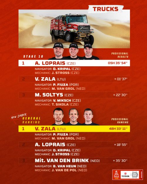 Цікаво, що 4-м зараз їде молодий Кей Хузінг на Renault Trucks C460. Його страхує досвідчений Герт Хузінк, яки й вже не претендує на нагороди, але виступає "криголамом" для свого племінника Кея.