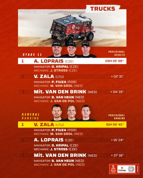 11 етап знову вніс зміни в стан фаворитів. Після перемоги на етапі Алеша Лопрайзі і 3-го місця на ньому у Мітчела ван ден Брінка, довелося голандцю пропустити вперед чеха і у загальній класифікації А от литовський екіпаж Вайдотаса Зала приїхав 2-м на етапі, але зберігає перевагу у 16 хв перед Алешом Лопрайзом. Це - не так багато, але цього може бути достатньо, щоб втримати перевагу до фінішу.