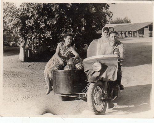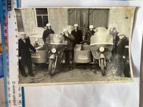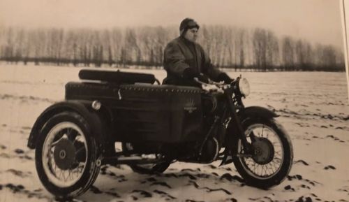 Вантажні мотоцикли у 50-70-х роках мали певні відмінності. Коляска була довгою та мала арку напівкруглої форми. Як на цьому фото.