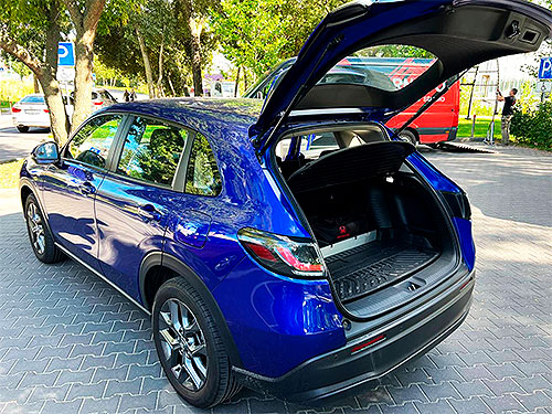 Під капотом у нашої Honda ZR-V 2,0-літровий бензиновий двигун потужністю 143 к.с. і він взагалі працює за циклом Аткінсона. А колеса крутить електродвигун потужністю 184 к.с. і з моментом 315 Нм, який отримує енергію з невеличкої батареї. Тобто, як і в системі e –power у Nissan Qashqai, який ми тестували в минулому році, в Honda ZR-V e:HEV двигун виконує функцію приводу електрогенератора і безпосередньо не крутить колеса.