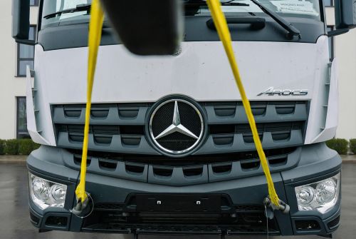 Базою для кранової установки обрано Mercedes-Benz Arocs 5 3333 K (6×4), спеціалізоване будівельне шасі, розраховане на повну масу до 33 тонн. Колісна формула 6×4 та ресорна підвіска з посиленими осями забезпечують необхідний запас міцності й стійкості під час роботи з важкими вантажами.