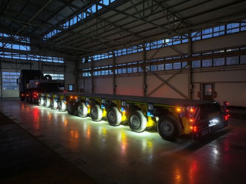 За допомогою такого модульного напівпричепа, перевізники, які працюють в сегменті надважких вантажів, можуть здійснювати перевезення складних вантажів, маючи високу маневренність модульного тралу.