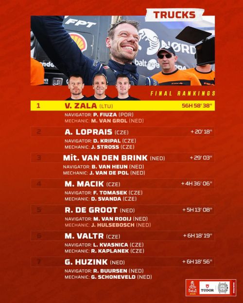 Відкриттям цього Дакару був юний Кей Хузінк, який їхав на Renault Trucks C460. Фаворитом в його команді був його дядько Герт Хузінк і він почав претендувати на перемогу вже з 2 етапу, але на першому марафоні вже мав технічні проблеми і вибув із боротьби, але залишився у перегонах.
